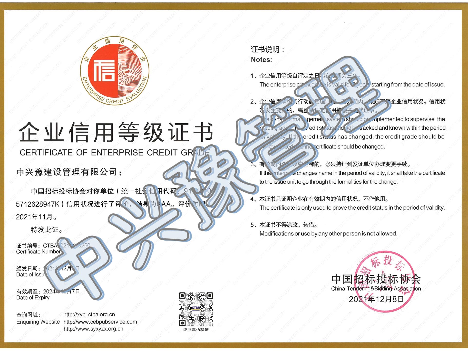 2021年度招標(biāo)代理機(jī)構(gòu)信用評(píng)價(jià)AAA證書(shū)-公司榮譽(yù)