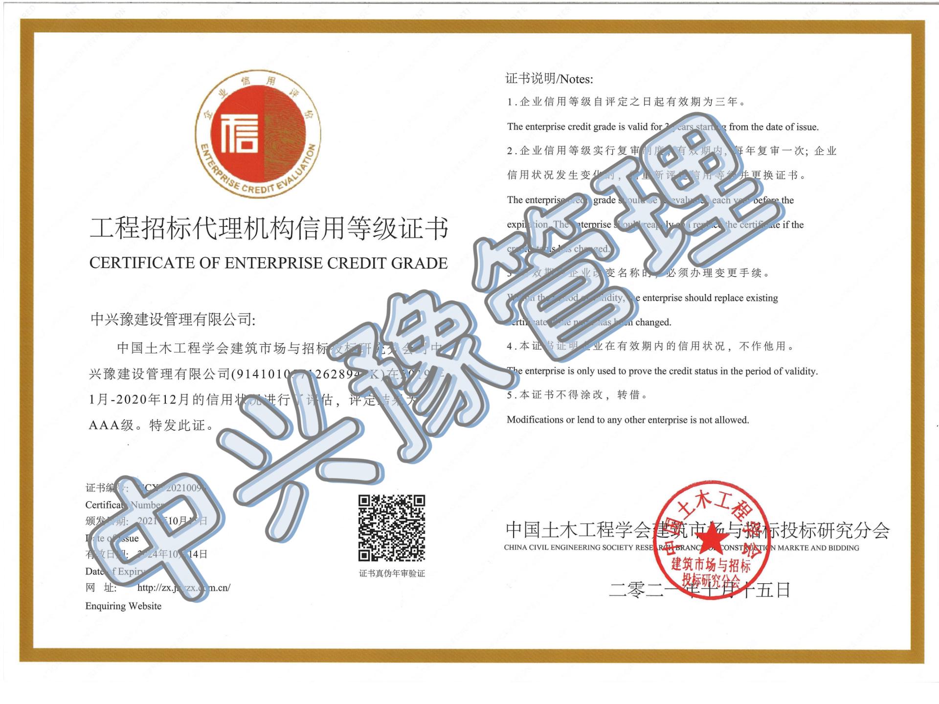 招標(biāo)代理機(jī)構(gòu)信用評價AAA證書-公司榮譽(yù)