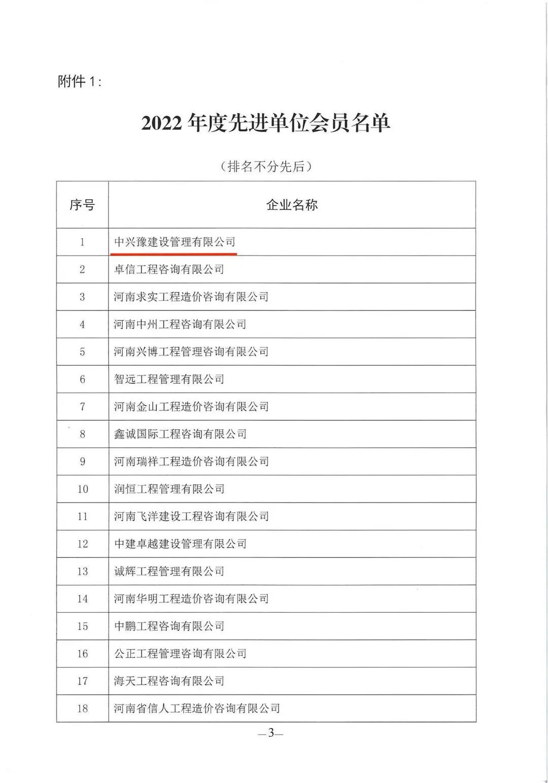 近日,河南省注冊造價(jià)工程師協(xié)會公布了“河南省注冊造價(jià)工程師協(xié)會2022年度先進(jìn)單位會員、先進(jìn)個人會員的通告”。我公司榮獲河南省注冊造價(jià)工程師協(xié)會2022年度先進(jìn)單位會員榮譽(yù)稱號,徐文、李杰、賈世軍三位同志獲得先進(jìn)個人會員的榮譽(yù)。