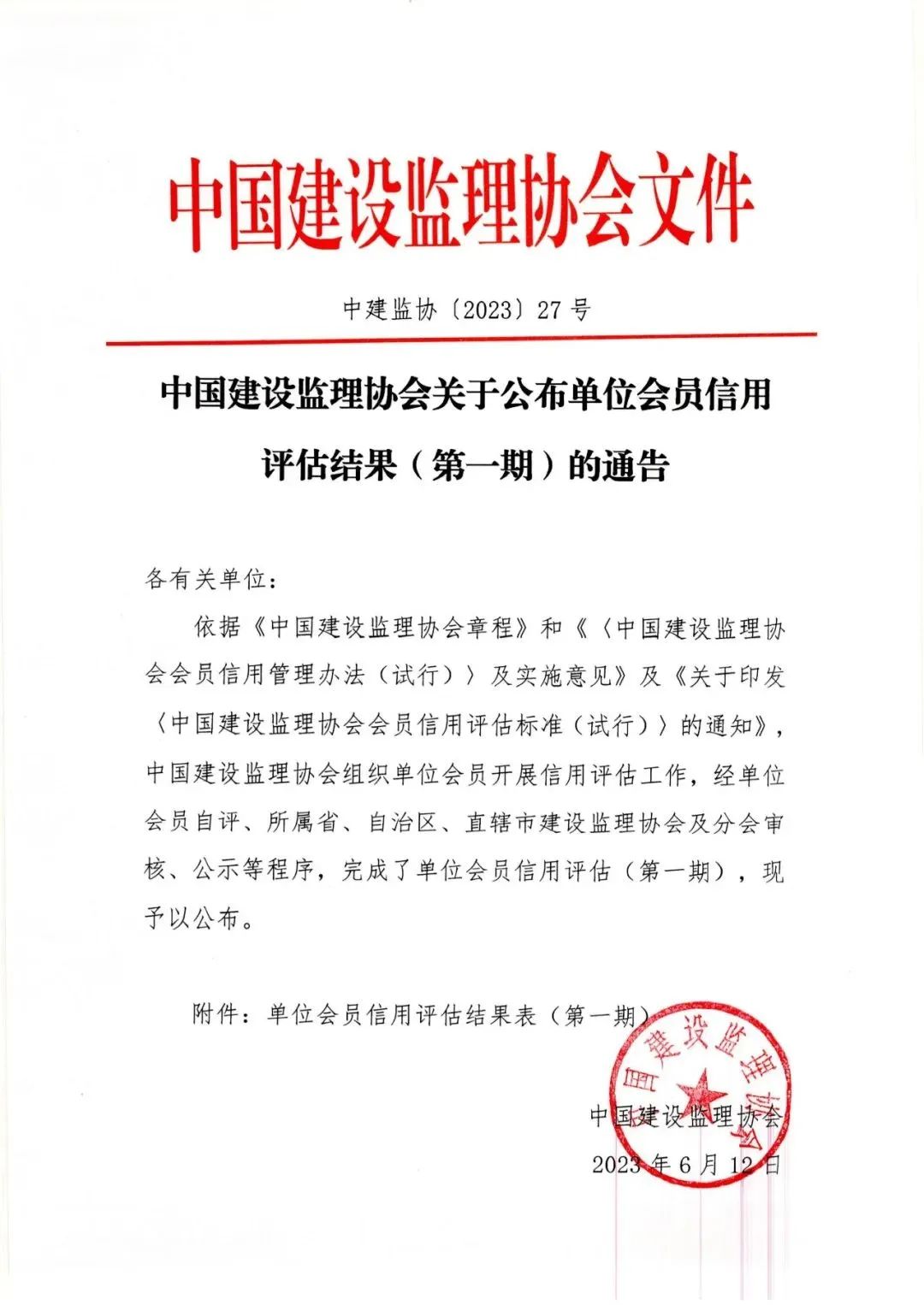 近日,中國建設監(jiān)理協會公布了《中國建設監(jiān)理協會關于公布單位會員信用評估結果(第一期)的通告》(中建監(jiān)協{2023}27號),中興豫建設管理有限公司獲評單位會員信用評估AAA級。