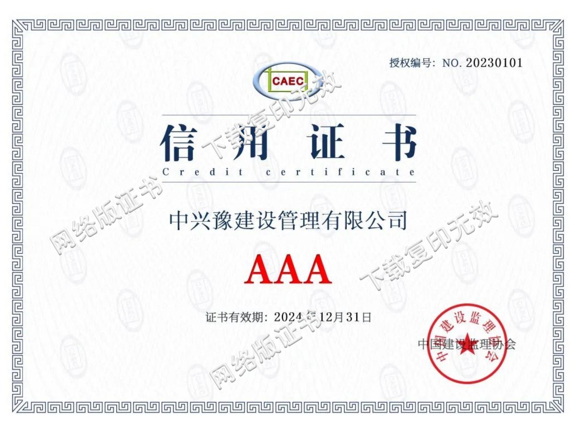 中興豫建設管理有限公司一直以來注重企業(yè)信用建設,堅持誠信經營,積極履行社會責任,贏得了廣大客戶的信賴和支持。此次榮獲行業(yè)協會的最高評級,既是對公司信用度和品牌形象的大力肯定,也是對廣大中興豫人的巨大激勵。我們將以此為契機,不斷提高工作水平,竭誠為社會各界提供優(yōu)質高效的服務,為建筑監(jiān)理行業(yè)快速發(fā)展做出積極的貢獻。