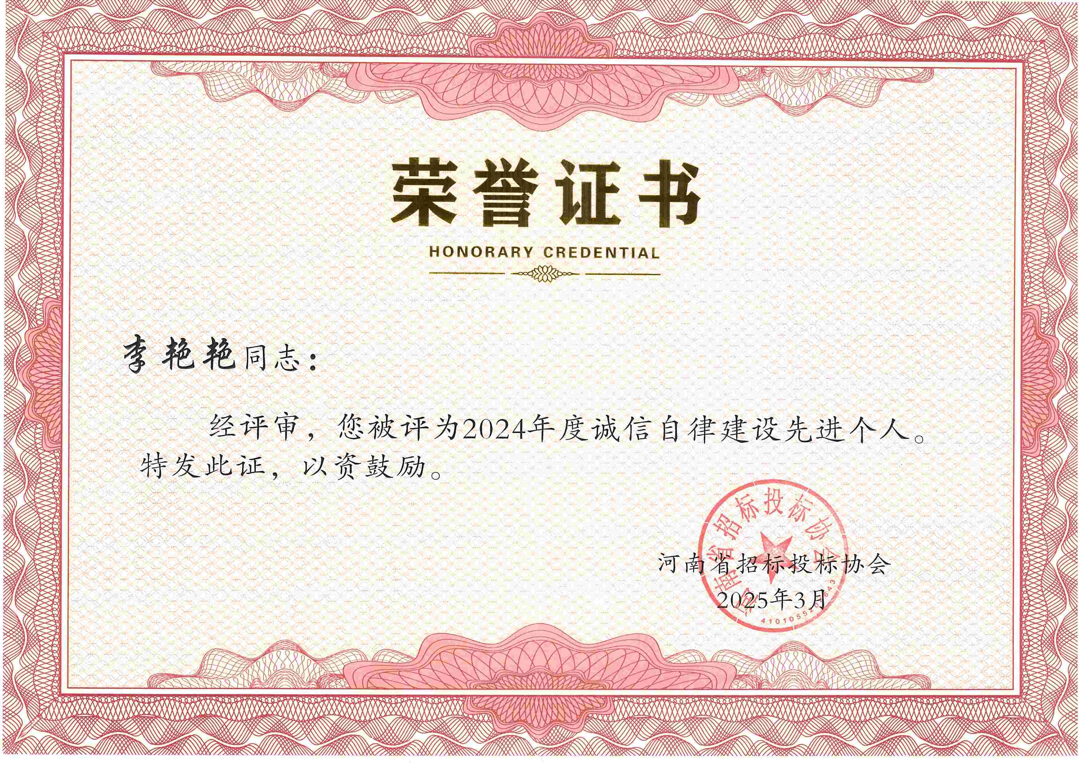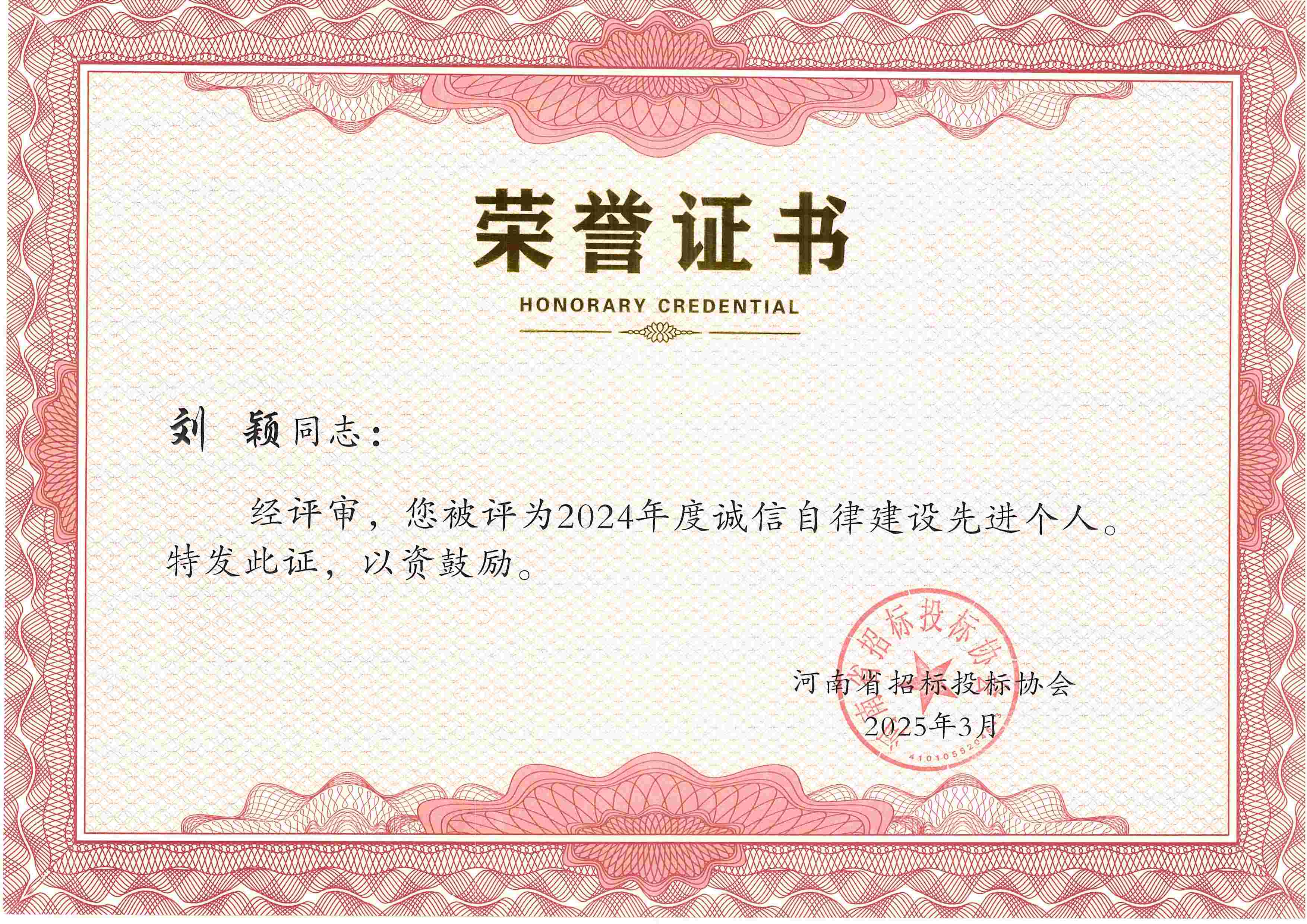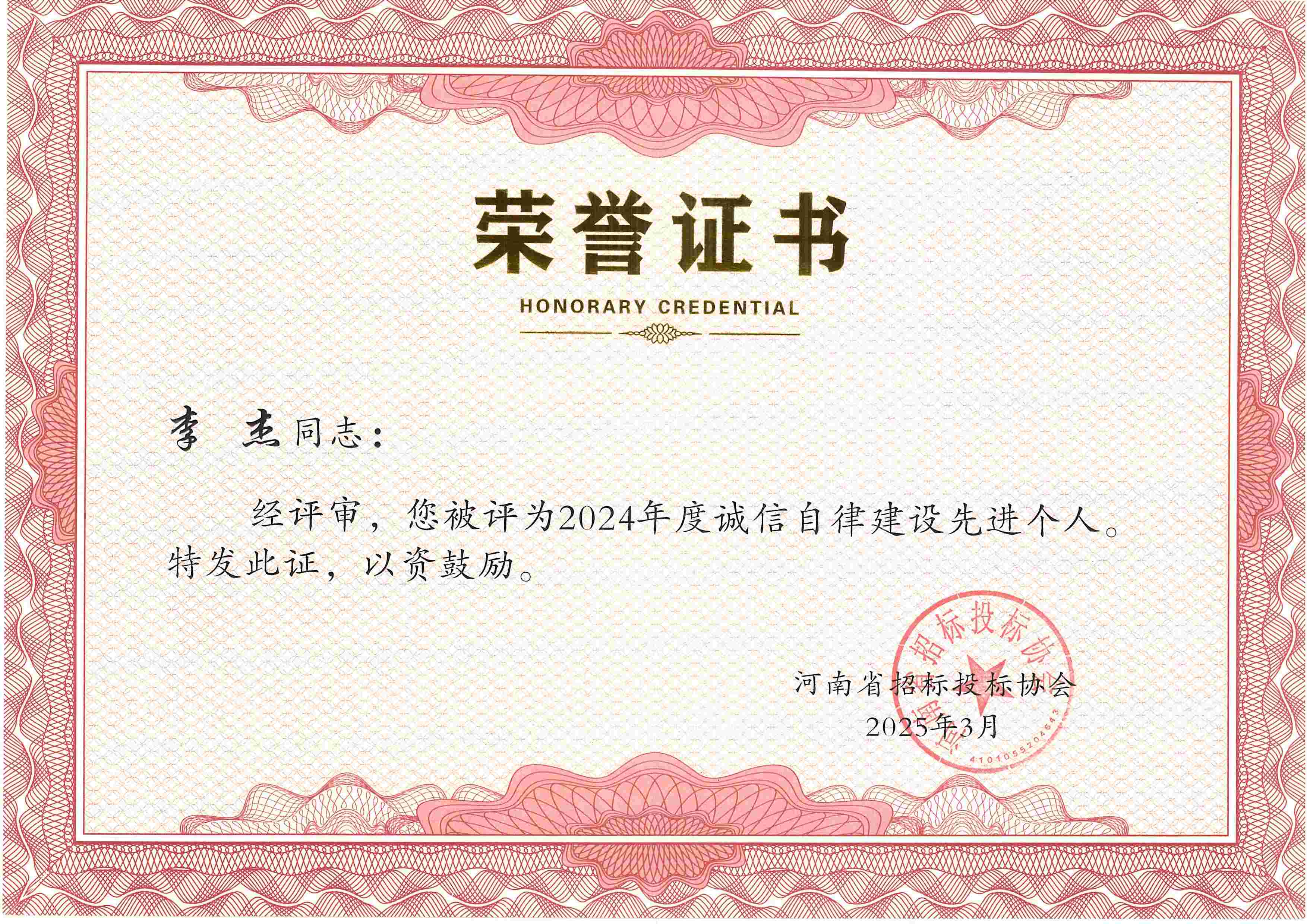 近日,河南省招標(biāo)投標(biāo)協(xié)會發(fā)布關(guān)于表彰2024年度誠信自律建設(shè)先進單位、先進個人的決定。其中,中興豫建設(shè)管理有限公司榮幸入選“2024年度誠信自律建設(shè)先進單位”。