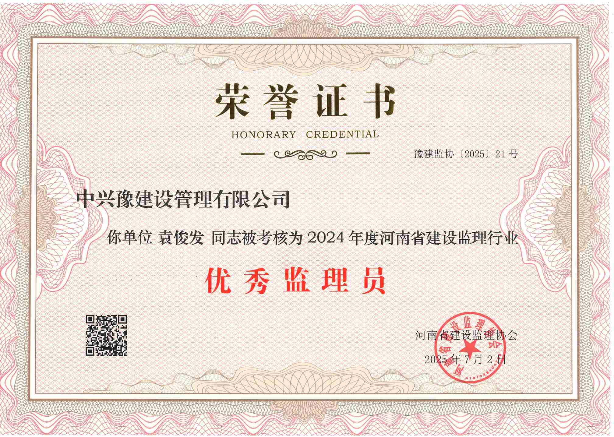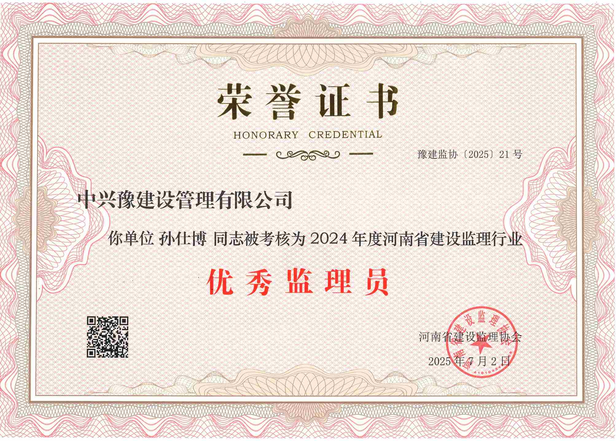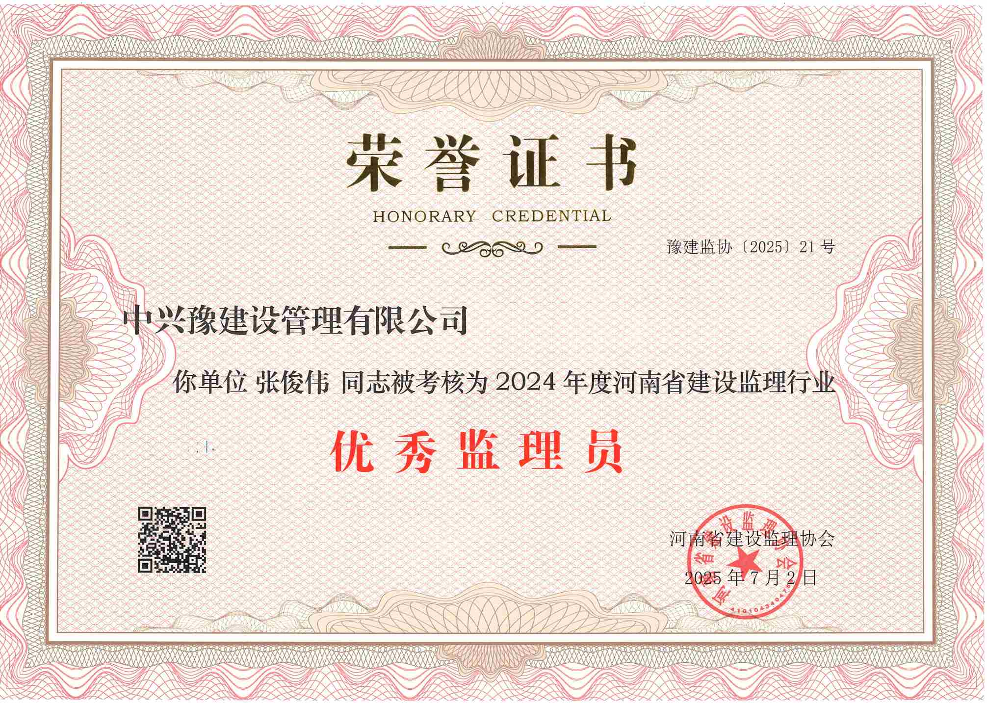 陳霄、范昂、呂怡秒、孫仕博、袁俊發(fā)、張俊偉、張世民 7位同志榮獲“優(yōu)秀監(jiān)理員”稱號