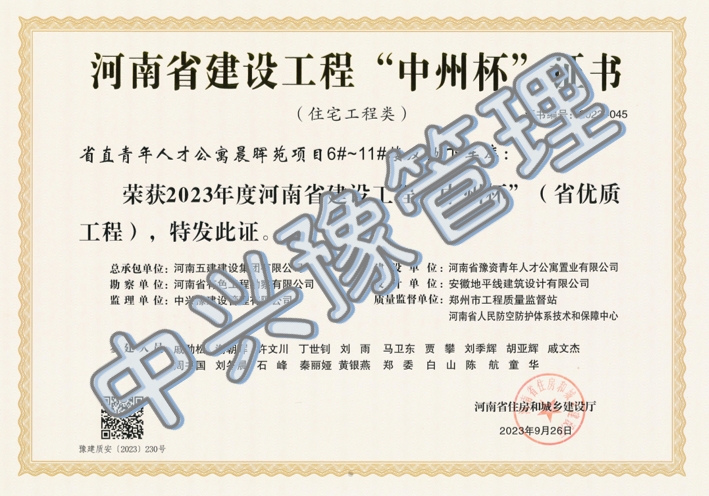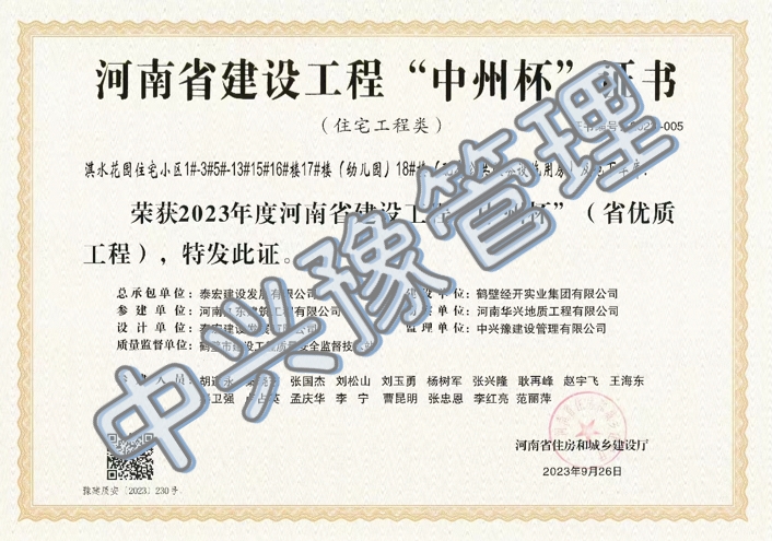 近日,河南省住房和城鄉(xiāng)建設廳公布了《關(guān)于2023年度河南省建設工程中州杯(省優(yōu)質(zhì)工程)的通報》。中興豫建設管理有限公司監(jiān)理的淇水花園住宅小區(qū)1#-3#5#-13#15#16#樓17#樓 (幼兒園) 18#樓(配套公共服務設施用房)及地下車庫項目和省直青年人才公寓晨暉苑項目6#~11#樓及地下車庫項目榜上有名。