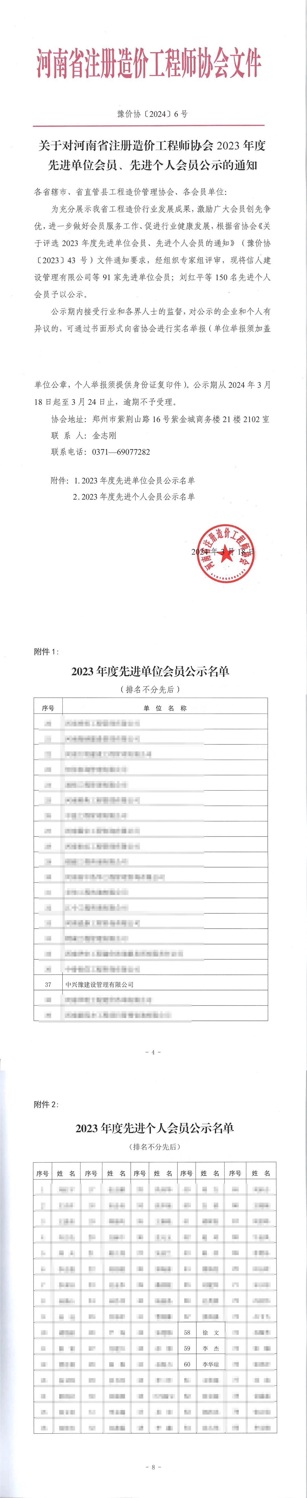 喜報(bào) | 中興豫建設(shè)管理有限公司榮獲河南省注冊(cè)造價(jià)工程師協(xié)會(huì)2023年度先進(jìn)單位會(huì)員、先進(jìn)個(gè)人會(huì)員榮譽(yù)稱號(hào)