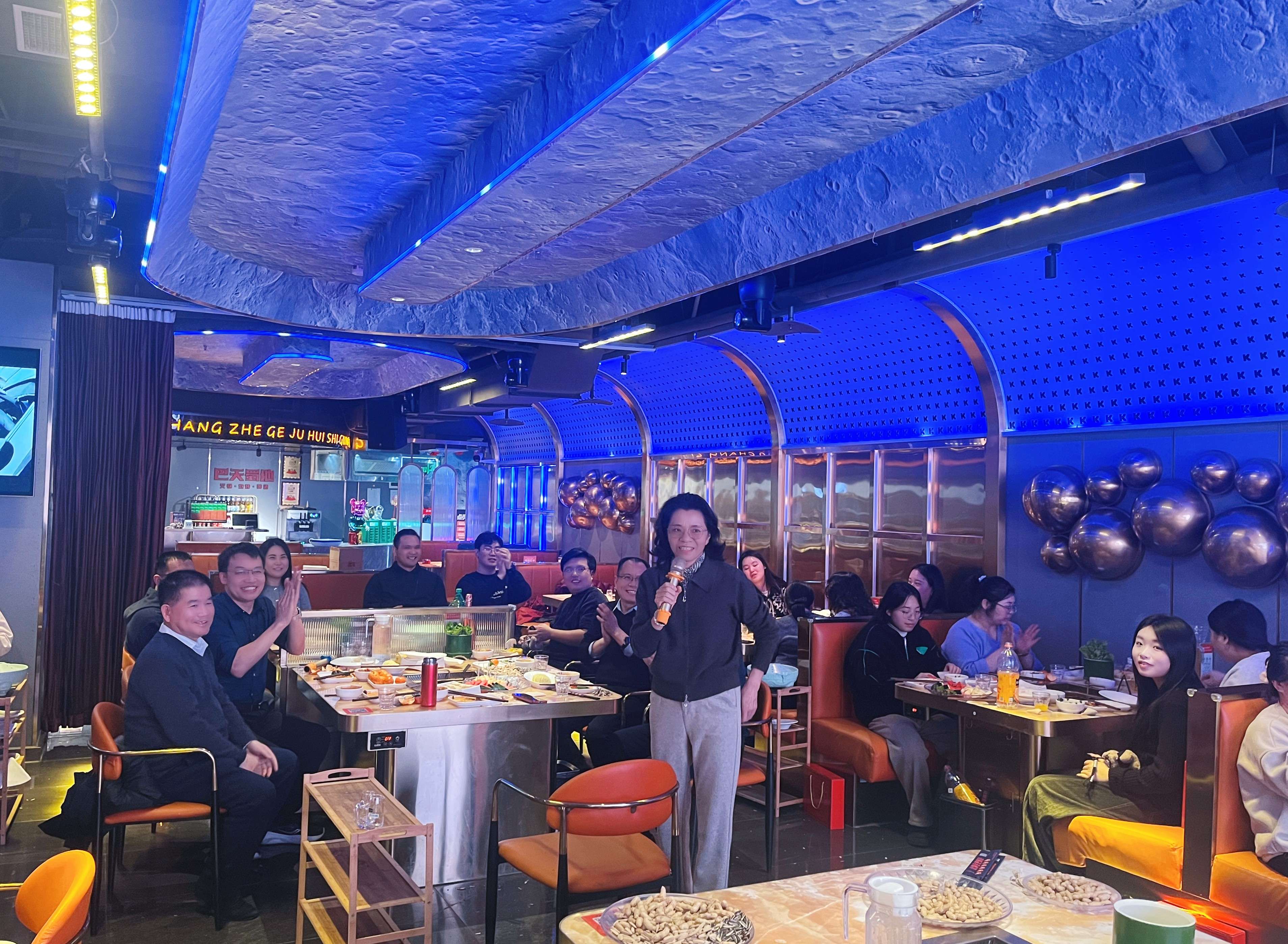 隨著酒會進程持續(xù),精彩不斷涌現(xiàn),酒席間,“數(shù)字炸彈” 游戲和歌曲演唱等節(jié)目表演陸續(xù)登場,現(xiàn)場洋溢著溫馨喜慶、暖意融融的氛圍。在聯(lián)歡酒會接近尾聲的時候,劉秒董事長帶領大家共同合唱《自由飛翔》,同時,向奮斗在全國各地的員工及其家屬送上新年的祝福,恭祝大家新年鴻運、身體健康、工作順利、幸福安康!迎新春聯(lián)歡酒會在悠揚的《明天會更好》的歌聲中圓滿落下帷幕。
