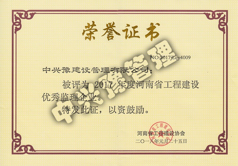 2017年度河南省優(yōu)秀監(jiān)理企業(yè)-公司榮譽(yù)