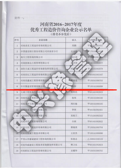 2016-2017年優(yōu)秀造價企業(yè)-公司榮譽