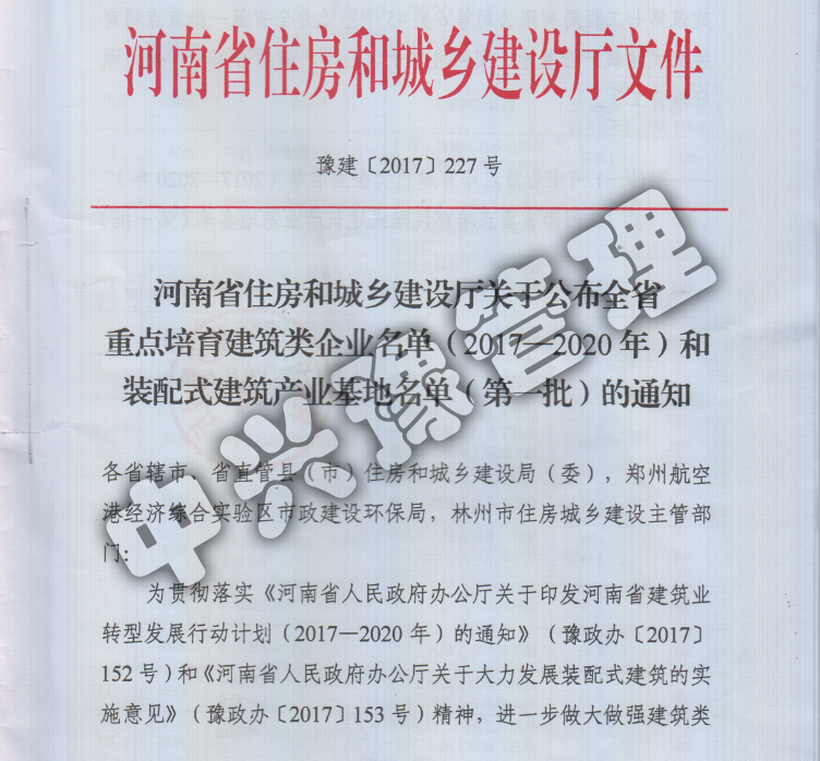 2017全省重點培育建筑類企業(yè)名單(2017-2020年)和裝配式建筑產業(yè)基地名單-公司榮譽