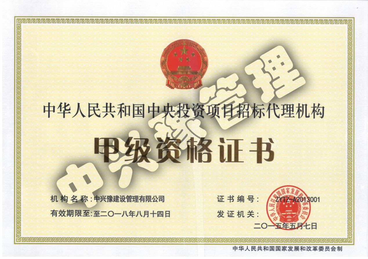 甲級中央投資項(xiàng)目招標(biāo)代理-公司資質(zhì)