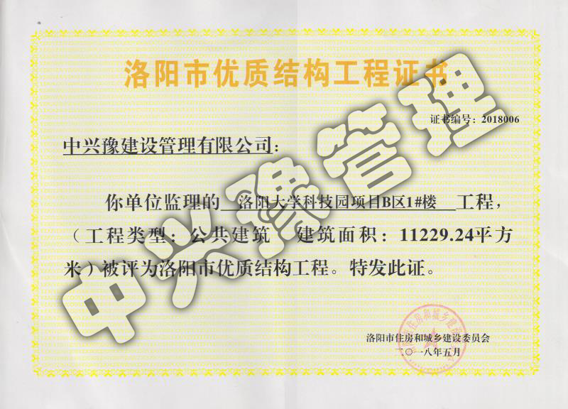 2018年洛陽市優(yōu)質(zhì)結(jié)構(gòu)工程-獲獎項目